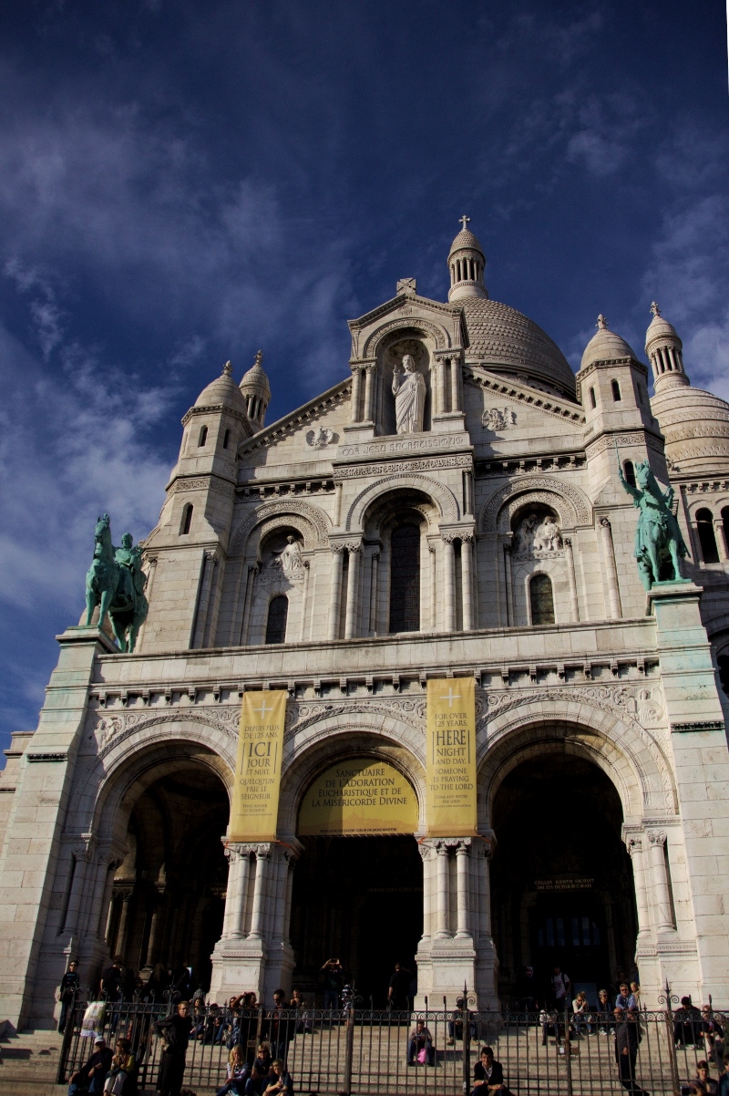 Bazylika Sacré-Cœur to budowla o charakterze sakralnym, która wywarła na mnie ogromne wrażenie. Być może ze względu na to, że jest stylizowana na obiekt z okresu romańsko-bizantyjskiego, co nie stanowi typowej cechy architektury Paryża. Bazylika zwieńcza wzgórze Montmartre i można ją dostrzec z wielu zakątków miasta. Jej cechą charakterystyczną jest biała elewacja wykonana z trawertynu oraz imponujące kopuły. Wstęp do Bazyliki jest bezpłatny i niewątpliwie warto z niego skorzystać. Wnętrze bowiem jest utrzymane w stylu minimalistycznym, przez co skupia uwagę na niemalże jedynej, ale wybitnej mozaice  przyozdabiającej sklepienie głównej kopuły. Warto również powrócić w okolice Sacré-Cœur wieczorem, by ujrzeć ją skąpaną w złotawym basku oświetlenia. Więcej na temat Bazyliki Sacré-Cœur pojawiło się już w moim poprzednim artykule o najważniejszych atrakcjach Paryża.