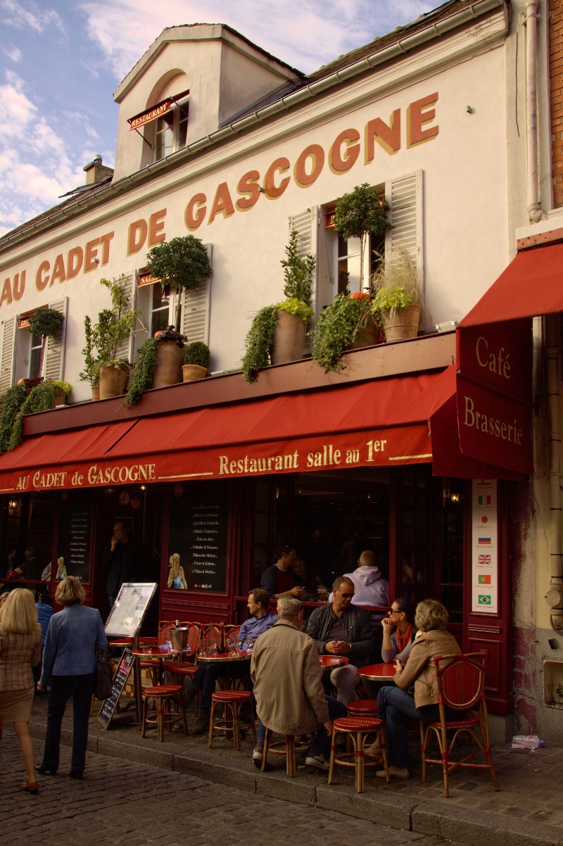 Place du Tertre to plac usytuowany tuż za Bazyliką Sacré-Cœur. Na ogół jest przepełniony turystami, jednak na podstawie własnego doświadczenia mogę powiedzieć, że wiele osób, które odwiedzają Bazylikę, nie wiedząc o placu, wracają z powrotem w dół Montmartre’u, w kierunku Moulin Rouge. Sama zawitałam w tym miejscu dopiero przy moim drugim pobycie w Paryżu. A mój chłopak, wychowany w Francji, który odwiedził Paryż dziesiątki razy, był tam wówczas pierwszy raz i tylko dzięki moim usilnym prośbom, by podążać za wskazówkami przewodnika! Częściej więc spotkamy tu grupy zorganizowanych wycieczkowiczów z przewodnikiem. Dwa aspekty Place du Tertre, czynią go tak wyjątkowym: 1. liczne kawiarnie i restauracje usiane wokół placu oraz 2. zbiorowisko malarzy pracujących „na żywo”. W większości ujrzymy tu portrecistów, którzy zarabiają na turystach, rysując ich karykatury lub upiększone portrety, ale znajdą się też i wyjątki, np. malujące martwą naturę czy pejzaże miejskie. Place du Tertre to miejsce, które wygląda jak ten idealny Paryż, który wielu z nas sobie wyobraża na podstawie filmów i starych fotografii, i który chcielibyśmy ujrzeć podczas swojej wyprawy. Są tu zatem artyści oraz gwarne kawiarnie ze stolikami wybiegającymi na uliczki i plac. Niewątpliwie Place du Tertre to obowiązkowy punkt na planie Paryża i podczas odwiedzin w Montmartrze.